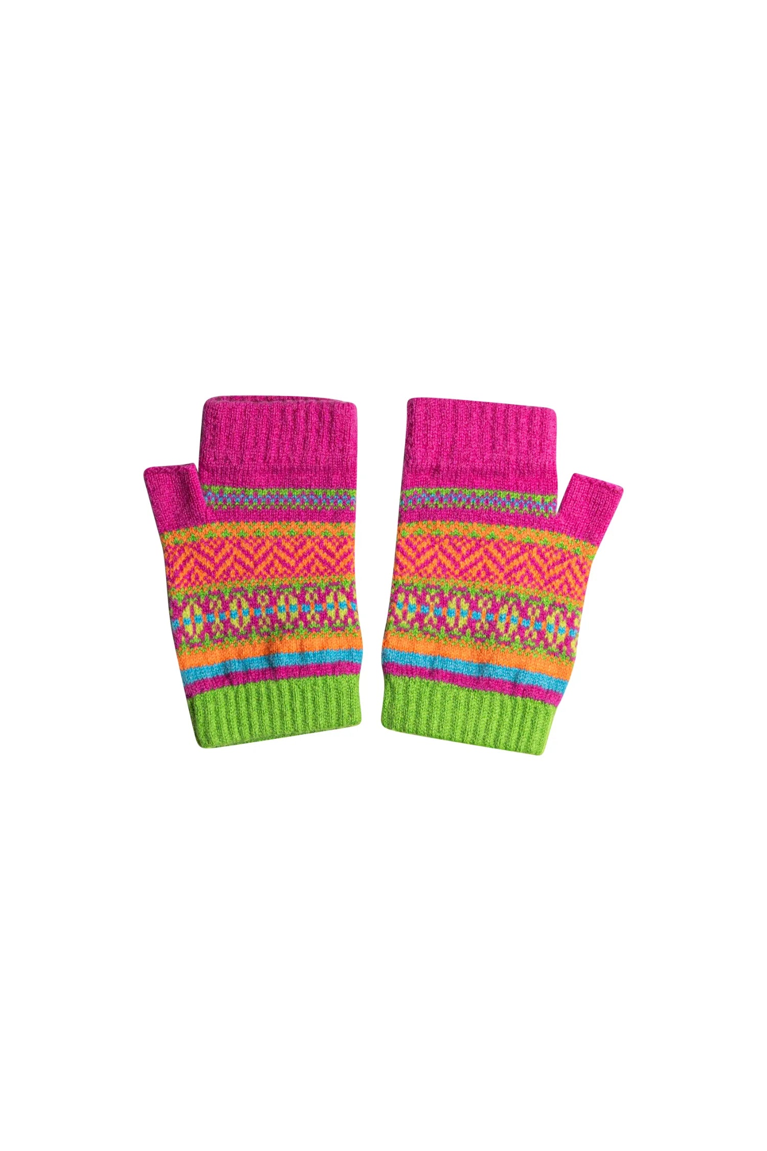 Cute open knitted mittens in the Stobo collection colourways with signature stripes and Fairisle details.